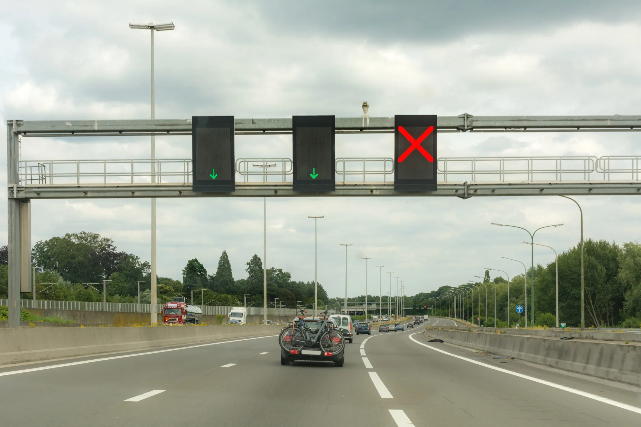 You may come across a highway upon which there are traffic lights above the lanes showing whether travel is permitted in the relevant lane. If the traffic light shows a red X, it means travel is prohibited in the lane below the X. If you continue in the lane you can be charged with VTL 1116(e). If you are convicted (whether after trial or with a guilty plea) you will get three points on your New York State driver’s license. The exact fine is up to the judge, with the maximum being $243. In New York City, the fine is $138. With the violation appearing on your driving record, you can expect to see increased insurance rates.